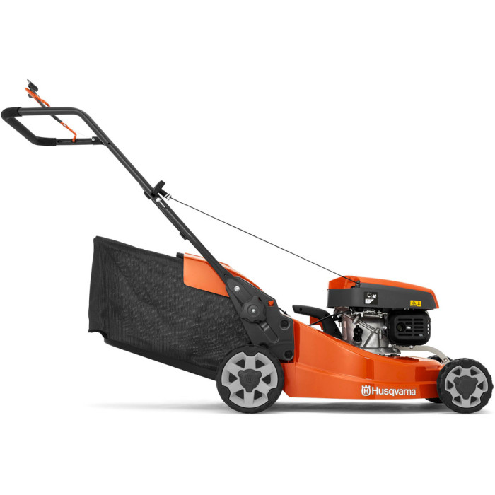 Газонокосилка Husqvarna LC 247 - новинка, несамоходная, простая в использовании газонокосилка для обработки средних участков до 1000 кв.м. Ширина обработки 47 см. Работает в двух режимах: срез травы в травосборник или выброс травы назад. Бензиновая газонокосилка Husqvarna LC 247 оснащена мощным, малошумным, долговечным двигателем Briggs & Stratton 450e с электростартером. Оснащена прочной металлической режущей декой и мягкой ручкой. Дополнительные функции включают в себя центральное 6-ступенчатое регулирование высоты скашивания и колеса на подшипниках. Задние большие колеса большего диаметра с широкими протекторами обеспечивают маневренность и устойчивое сцепление газонокосилки Husqvarna LC 247 с землей.