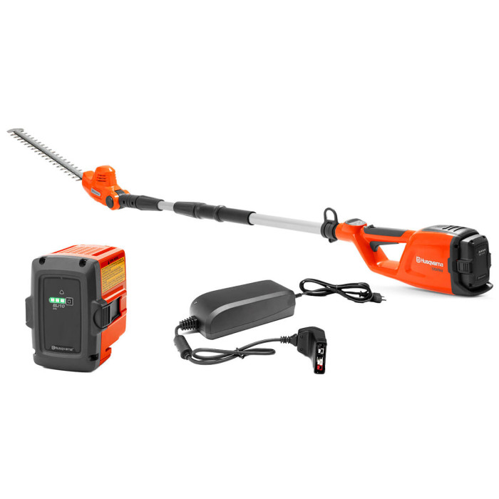 Аккумуляторный высоторез Husqvarna 120iTK4-H с насадкой-кусторезом HK4, аккумулятором BLi10 на 36 В и зарядным устройством QC80. С его помощью можно легко срезать ветки диаметром 20 см на высоте до 4 м. Телескопическая, разборная штанга. Насадка-кусторез PK4 длиной 50 см. Длина инструмента 230,5 см. Вес без аккумулятора 4,525 кг.