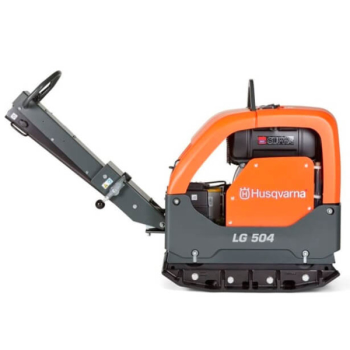 Віброплита Husqvarna LG 504 DEW являє собою важку реверсивну модель, що працює на дизельному паливі. Оснащена промисловим 4-тактним одноциліндровим двигуном Hatz 1 D81Z потужністю 9.1 кВт (12.3 к.с.) з електрозапуском. Розмір основи - 900х700 мм, включно з розширювачами по 75 мм з кожного боку. Відцентрова сила становить 65 кН за частоти 4140 вібрацій на хвилину (69 Гц), амплітуда - 2.4 мм. Глибина ущільнення досягає 40 см за максимальної швидкості руху 30 м/хв. Об'єм паливного бака - 7 л. У конструкції передбачено привід 1 вперед / 1 назад, кут допустимого нахилу двигуна - до 20°, вібрація на ручці - 2.5 м/с². Габарити: 1670x700x1190 мм, рівень шуму - 108 дБ. До комплекту входять розширювачі плити.