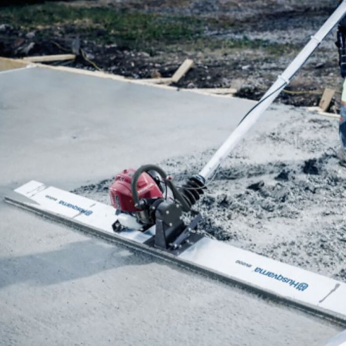 Віброрейка Husqvarna BV 20 G оснащена бензиновим двигуном Honda GX 25 об'ємом 25 см3 потужністю 0.72 кВт (1 к.с.), який забезпечує ефективну роботу при опрацюванні бетонної суміші та забезпечує високу якість розрівнювання поверхні. Ця віброрейка ідеально підходить для проектів з укладання бетонної підлоги, а також для інших будівельних завдань, що вимагають рівного та гладкого фінішу. Кількість вібрацій - 7000 віб/хв. Відцентрова сила - 1.1 кН. Робоча ширина – 200 см. Об'єм паливного бака – 0.58 л, масляного картера – 0.08 л. Вага – 16.6 кг.