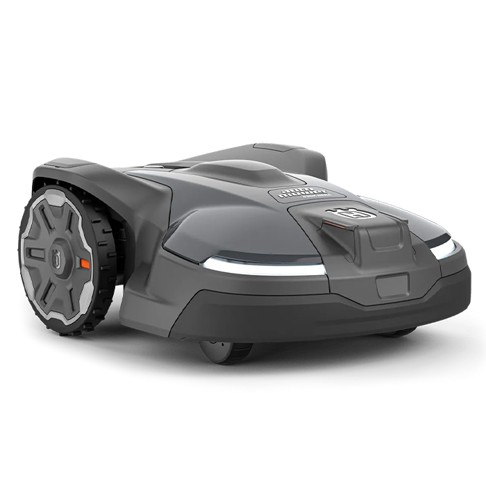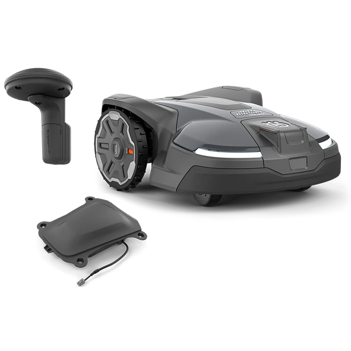 - Регулювання висоти скошування (20-60 мм) здійснюється через програму Husqvarna Automower Connect. Ширина косіння становить 240 мм.