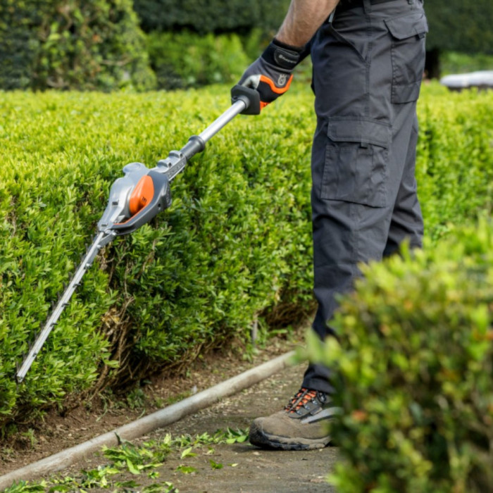 Husqvarna 520iHT4 - бездротовий кущоріз із телескопічною штангою для підрізання живоплоту в садах, парках і скверах. Інноваційний безщітковий двигун власної розробки. 4000 різів на хвилину забезпечують чудові результати різання. Високошвидкісні регульовані ріжучі ножі довжиною 55 см. Відстань між зубцями ножів становить 32 мм.
