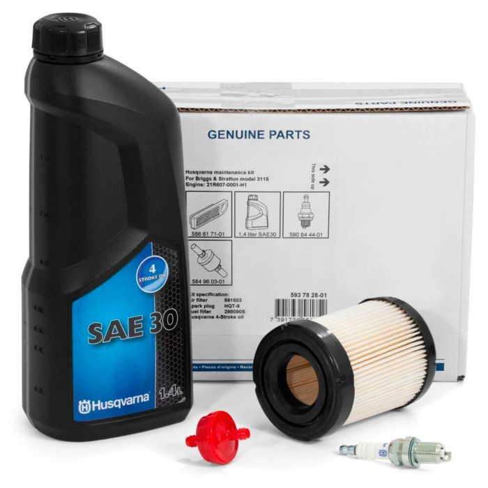 Оригінальний сервісний комплект Husqvarna розроблено для технічного обслуговування двигунів BriggsStratton 3115, встановлених на райдерах і садових тракторах.